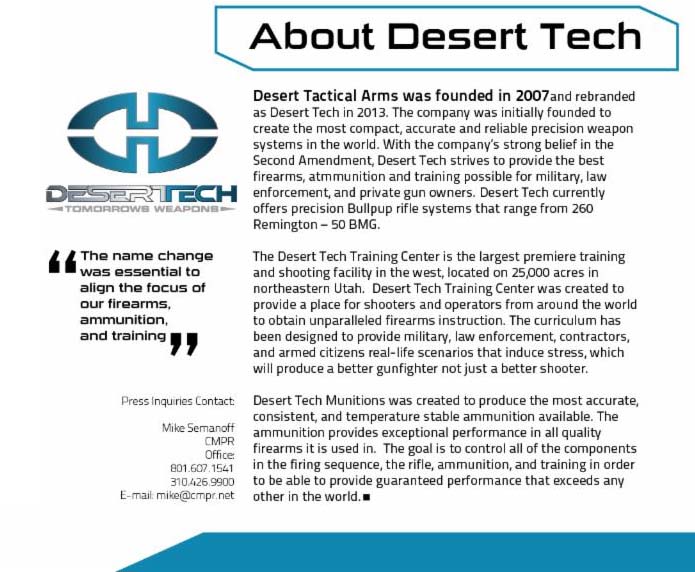 Press Release: Desert Tactical Arms To Rebrand Company As Desert Tech